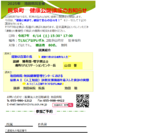 令和7年6/14 (土) 15:30~17:00ウェルピアながいずみにて健康公開講座行われます。